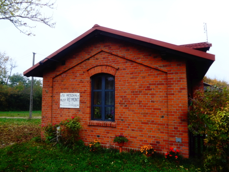 Na każdym obrocie koła jest tez mnóstwo nawiązań do najsłynniejszego mieszkańca tych stron. Tu rzeźba, tu popiersie, tam domek. Nic dziwnego powstała tu jedna z najważniejszych pozycji polskiej literatury. Dwukrotnie ekranizowana (1922, 1973) powieść Chłopi. Odwiedzam symboliczną mogiłę „Boryny z Chłopów” i domek pisarza, który procował tu, jako pomocnik dozorcy na odcinku kolei Warszawsko – Wiedeńskiej … Jeszcze pożegnalna herbatka u Boryny i koniec zwiedzania na dziś. Przez uśmiechnięty Maków lecę do Domaniewic i znów cieszę się ciepłem pociągów ŁKA. Czas wracać do domu.